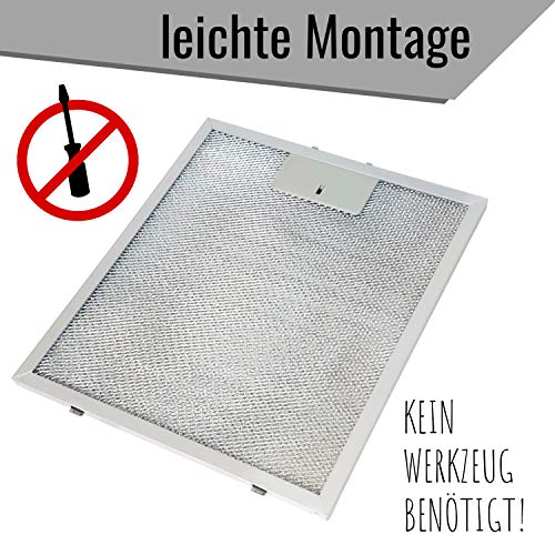 Dettagli: Filtro antigrasso in metallo per cappe aspiranti, 320 x 260 mm, con griglia metallica per cappe da cucina (2 pezzi) Contenuto della confezione: riceverete 2 filtri antigrasso in metallo con dimensioni di 320 x 260 mm, adatti per tutte le cappe aspiranti. ✅ Adatto per: tutti i modelli e marche di cappe aspiranti da cucina con filtri antigrasso da 32 x 26 cm. Si prega di verificare le dimensioni del filtro antigrasso precedente prima di effettuare l'ordine. Montaggio semplicissimo: la sostituzione del filtro antigrasso avviene senza attrezzi. Facile da pulire: i filtri antigrasso in alluminio sono lavabili in lavastoviglie e possono quindi essere facilmente lavati in lavastoviglie.