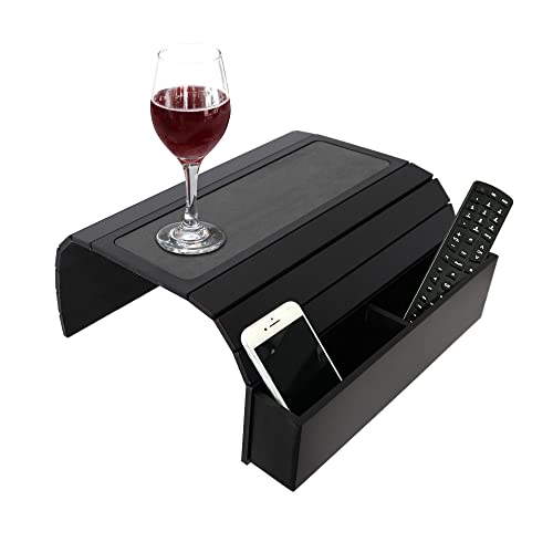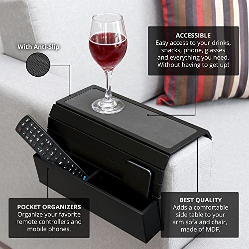 Sofa Tray Table with EVA Base. Remote Control and Cellphone Organizer Holder, Arm Rest Organizer, Arm Rest Table with Pockets. Fits Over Square Chair arms. (Black)