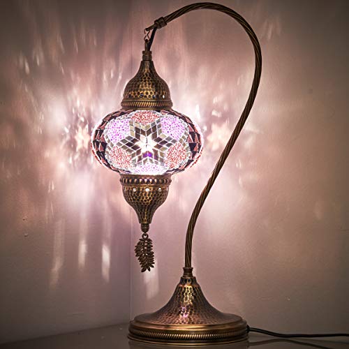 The swan neck design of the Turkish Moroccan Mosaic Lamp not only adds to its visual appeal but also enhances the light it emits. This unique design ensures that the light from the lamp is dispersed evenly throughout the room, creating a warm, inviting atmosphere that is perfect for relaxation and conversation.