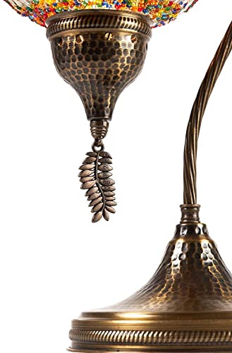 The metal body of the Turkish Moroccan Mosaic Lamp is another aspect that sets it apart from other lamps. The antique brass color hammered finish gives the lamp a timeless, classic appeal that complements the intricate glass globe. The hanging metal leaf, adorned with the DEMMEX logo, adds a touch of elegance and sophistication to the lamp's overall appearance.