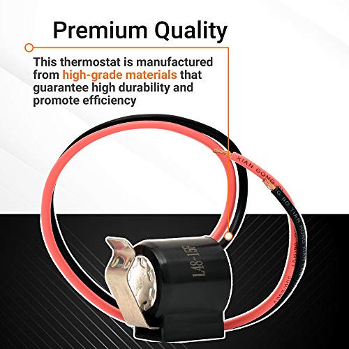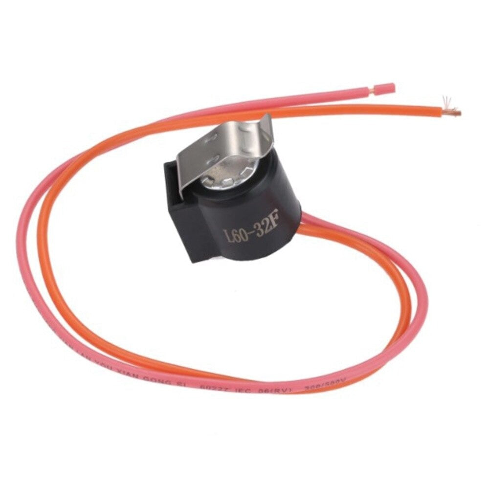 Details: SPECIFICATIONS This clip-on refrigerator defrost thermostat clips onto your refrigerator's evaporator. It will cut out at 60 degrees Fahrenheit and kick back in when the temperature drops to 32 degrees Fahrenheit. Works with the following models: