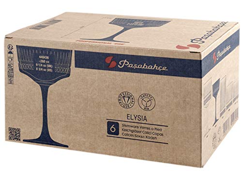 Détails : Pack de 6 élégants verres en verre transparent Pasabahce Elysia. Passe au lave-vaisselle Capacité cl 26