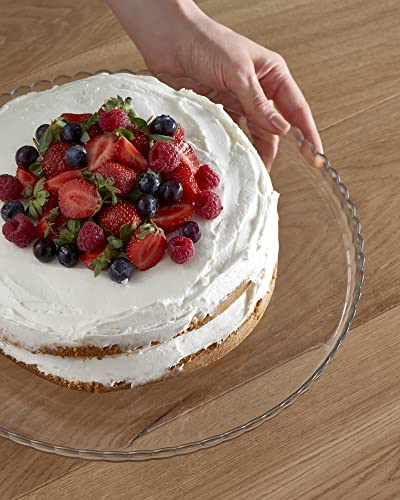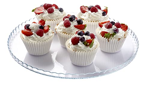 Pasabahce Plateau de service en verre transparent de qualité supérieure, supports à gâteaux au design unique, assiette de serveur, idéal pour les cupcakes, les biscuits, les collations et les fruits, parfait pour les fêtes, les cadeaux, les pendaisons de crémaillère, les mariages, les anniversaires